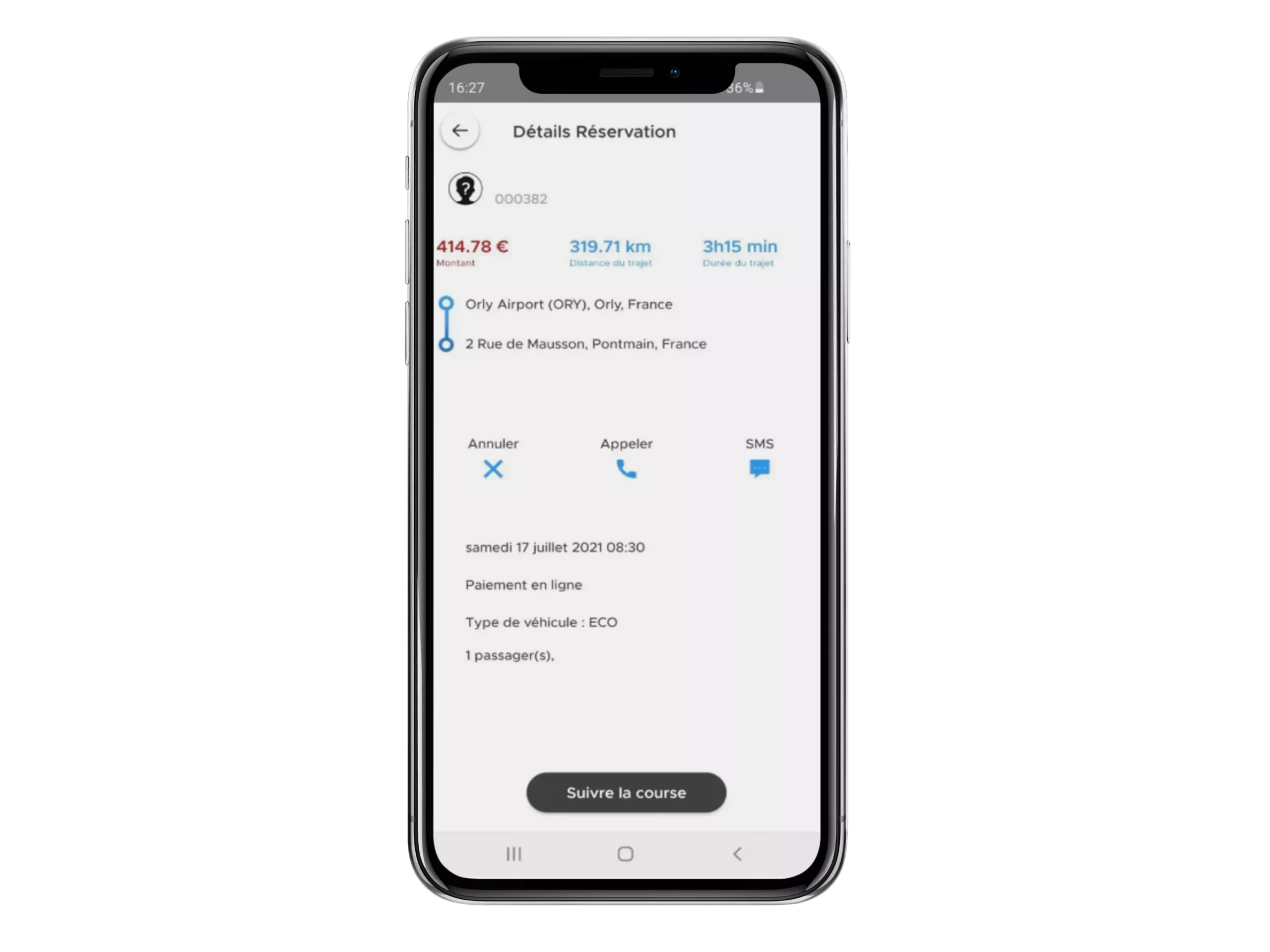 Une fois la réservation validée, un chauffeur s’occupera de votre course dans un délai très court.